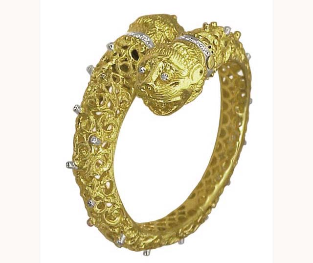 Zolotas-Lalaounis 18k Yellow & White Gold Diamonds Bangle Bracelet