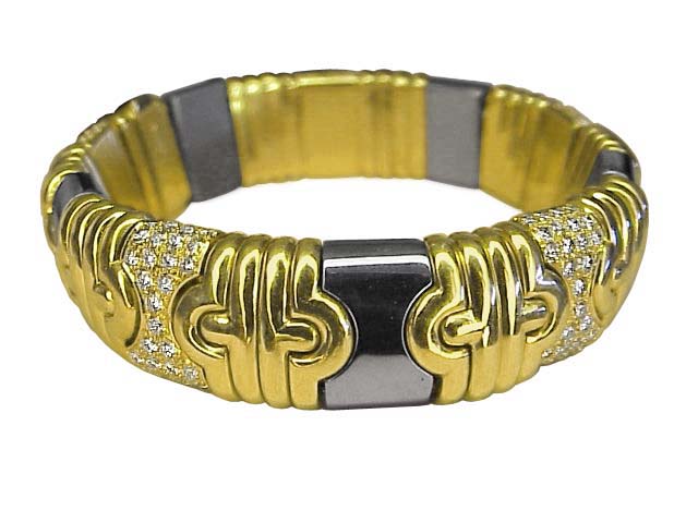 Bulgari 18K Yellow Gold Hand Carved Hematite Diamond Bracelet