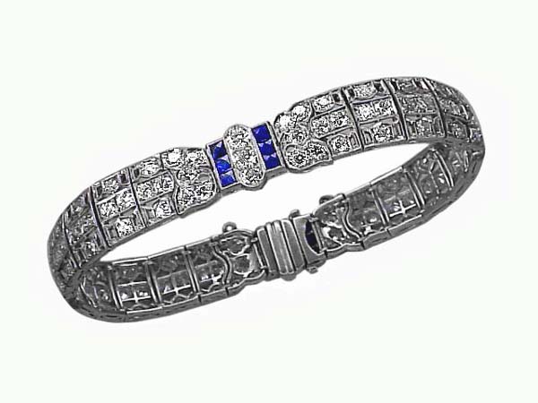 Platinum Diamond Sapphire Bracelet, 8ct total diamond weight, ca1920
